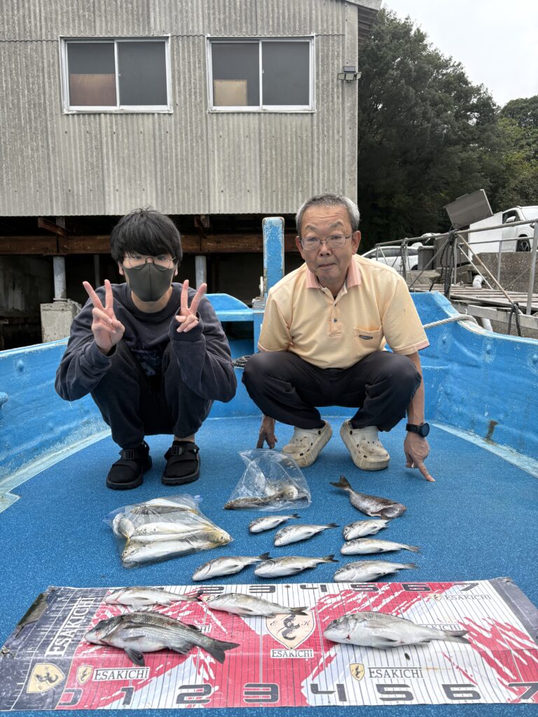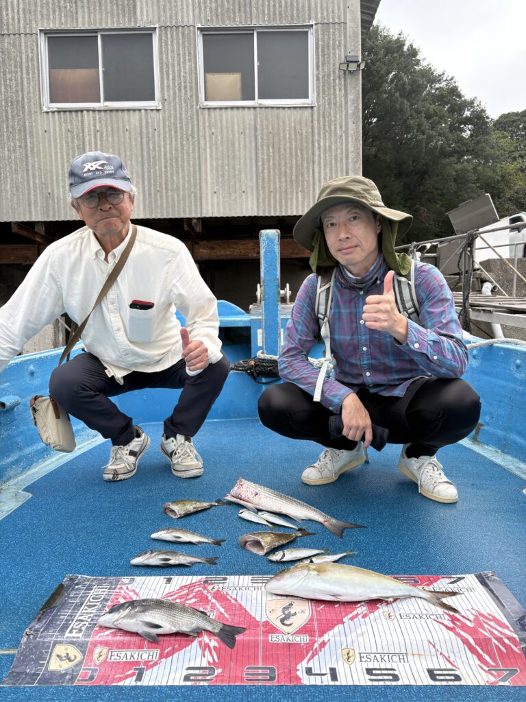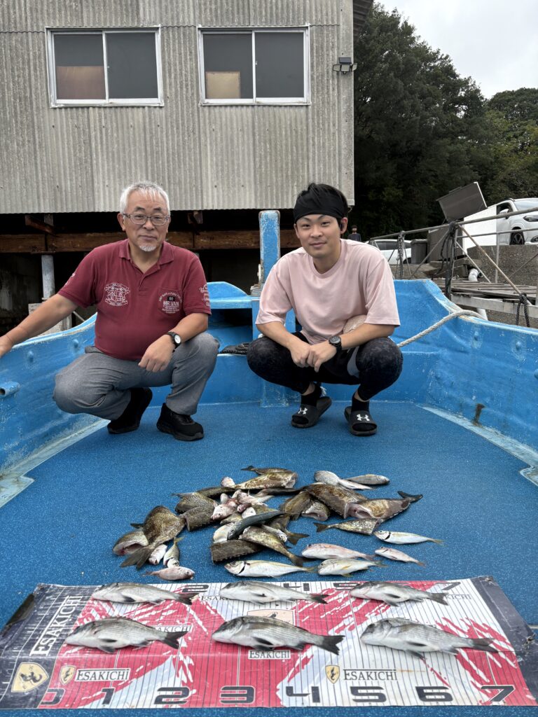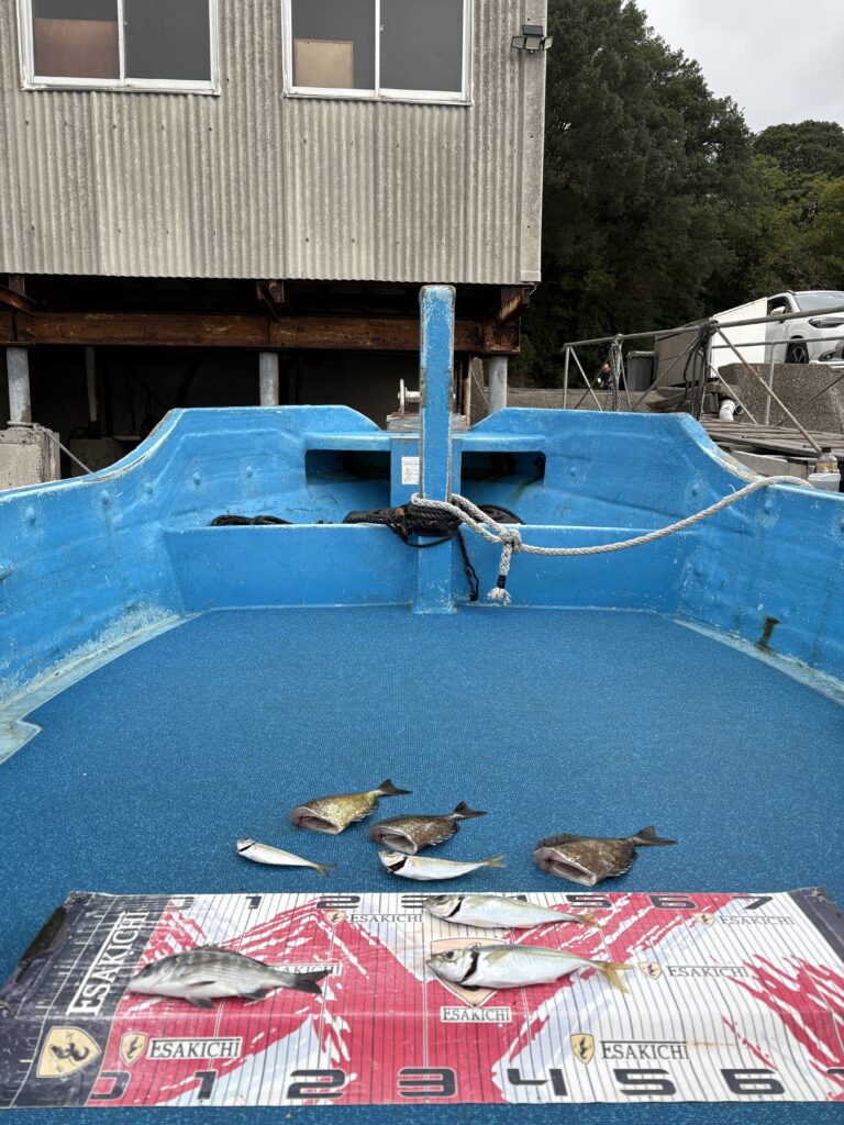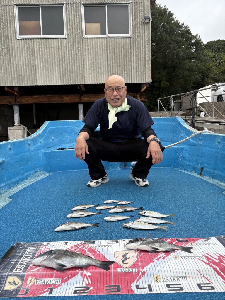 10月4日 本日は大雨予報でキャンセルばかりとなってしまいました。実際には午前中に少し強めの雨が降った程度で、午後はほとんど降らず!海の状況は◎で、午前中から高活性‼︎チヌはほとんどの方がゲットで、40枚オーバーの方も!泳がせも好調維持で、シオ複数本+ハモでした‼︎