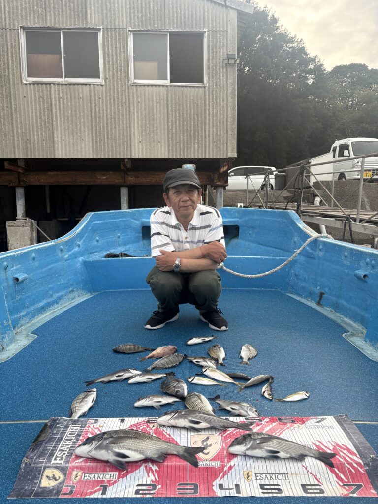 10月8日 本日は雨予報でキャンセルも多く、お客様はお2人のみとなりました。実際にはお天気もよく、終日釣り日和に!釣果はしっかりと伸び、お2人とも狙いのチヌを2桁枚数ゲット‼︎アイゴ・アジ・マダイ・ボラも多かったお話しで、全体的な活性も◎でした! 2025年釣果 2025.10.08 石河様筏釣り餌:オキアミ、サナギ、コーン21-30cmチヌ20枚 近藤様筏釣り餌:オキアミ、サナギ、コーン20-35cmチヌ16枚、マダイ、アジ