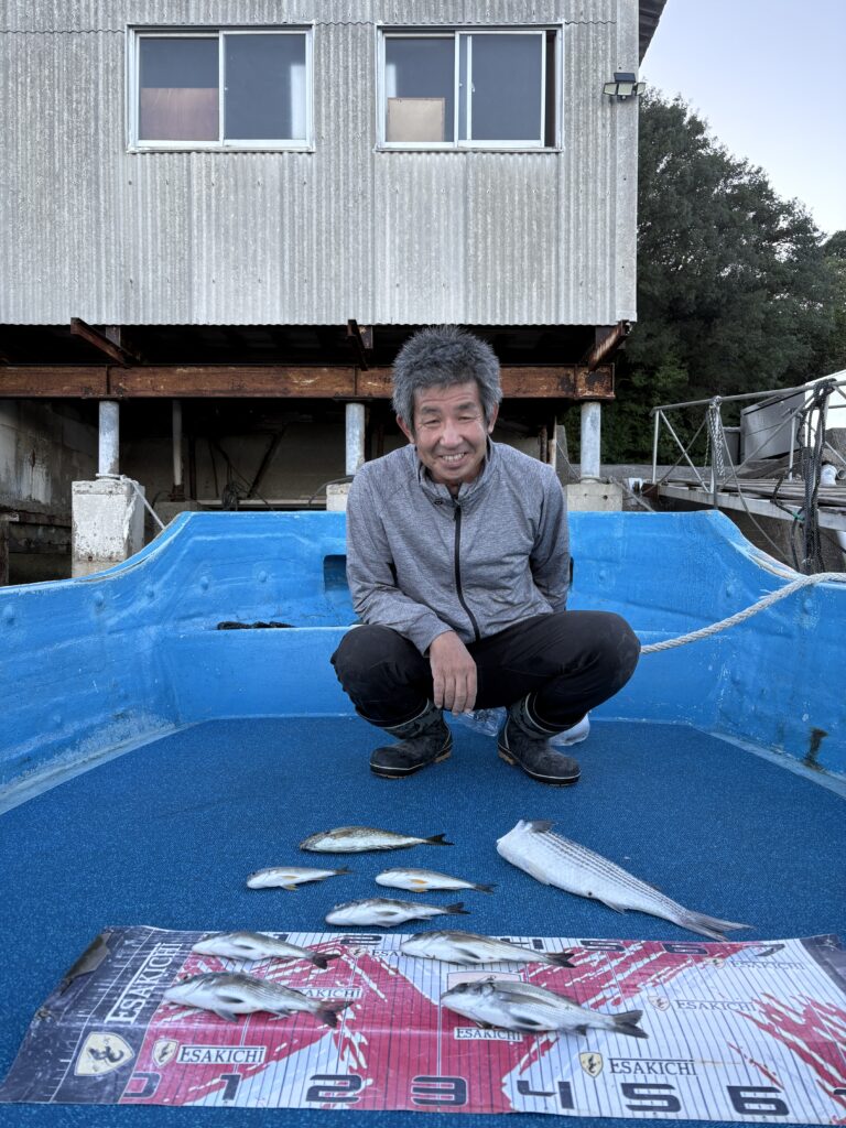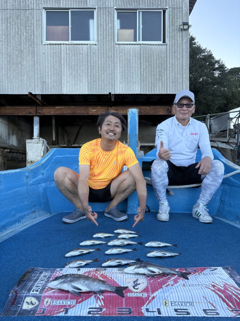 10月13日 本日はお天気良く気温は高かったですが、予報通り爆風のお天気に。キャンセルばかりでお客様も少なく、当たりがわからないとのお話し多数。それでも釣果あげてくださり、チヌは2桁枚数+全組ゲット!泳がせも当たり多く、ヒラメ複数‼︎アジも良型含めて多数でした!