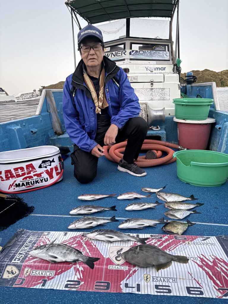 23-28cmチヌ6枚、25cmカワハギ、マダイ、アイゴ