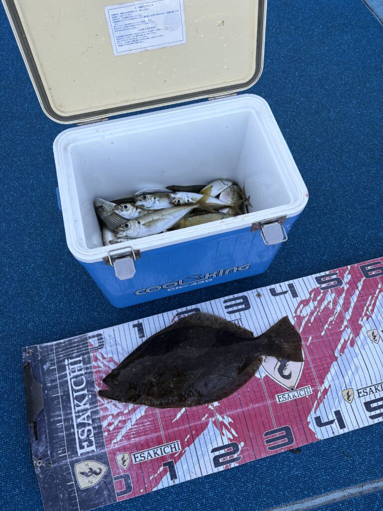 44.5cmヒラメ、アイゴ、サバ、アジ多数