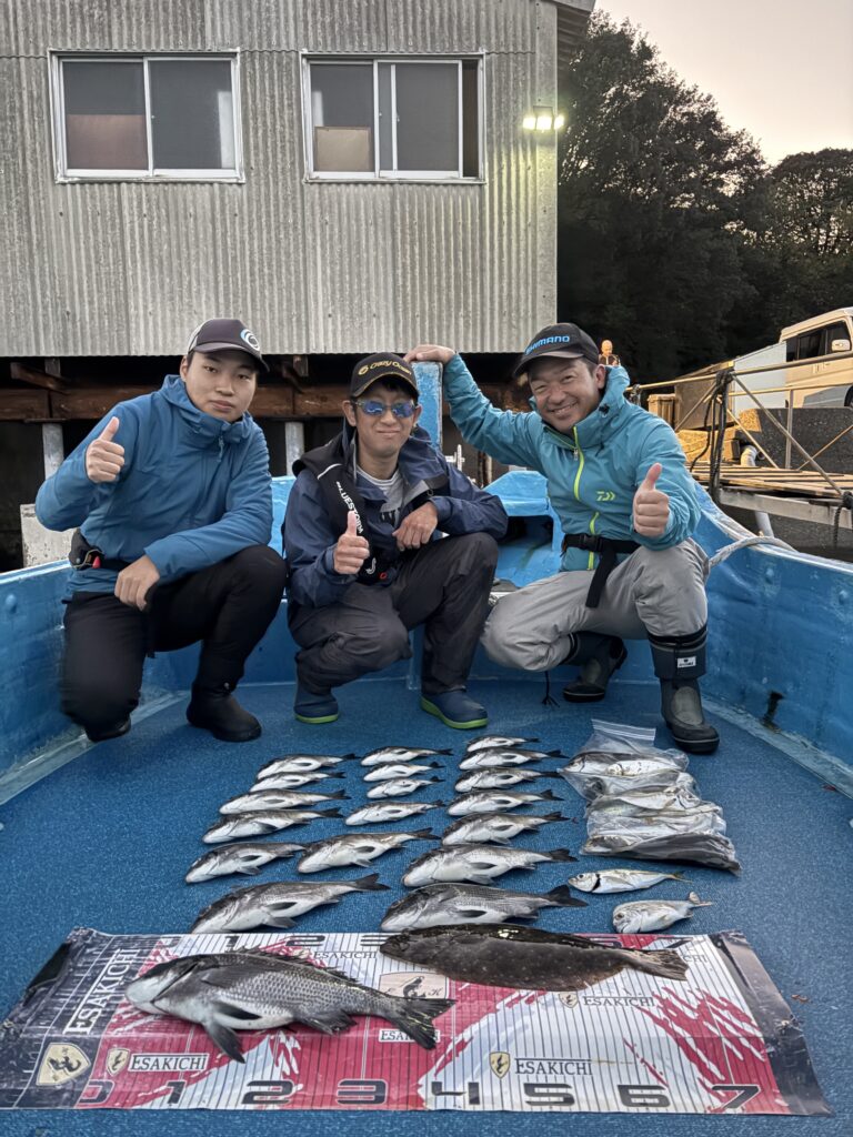 21-40.5cmチヌ19枚、40cmヒラメ、へダイ、コノシロ、アジ大漁