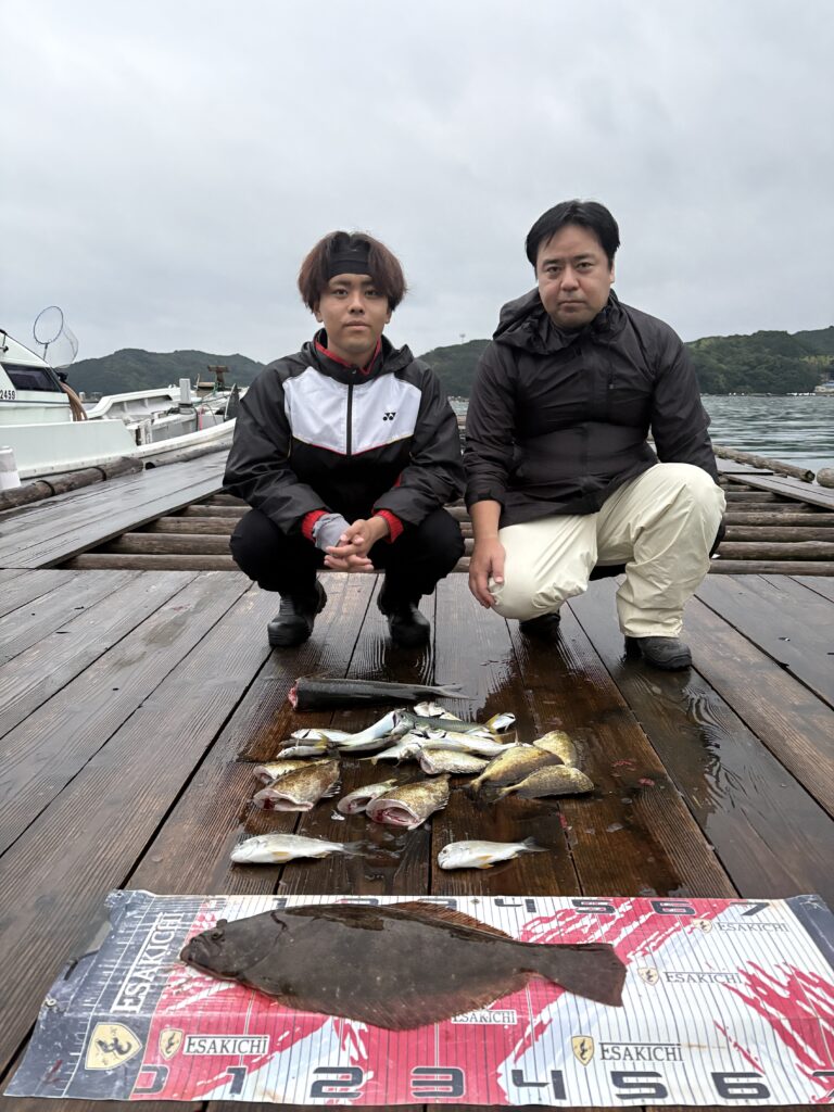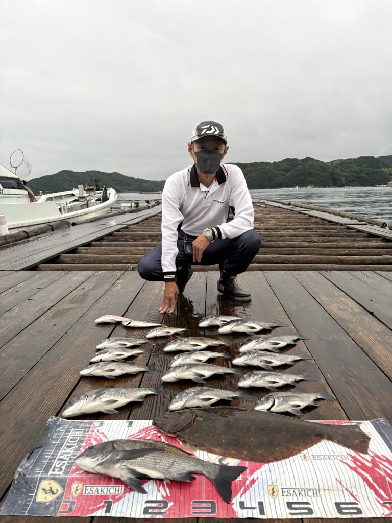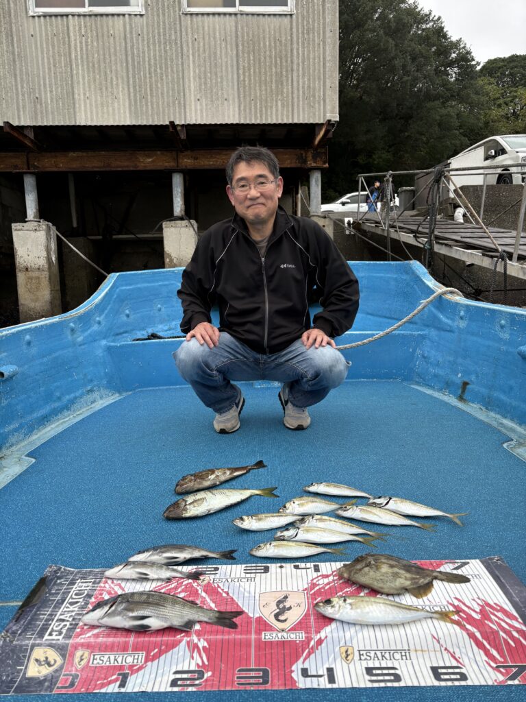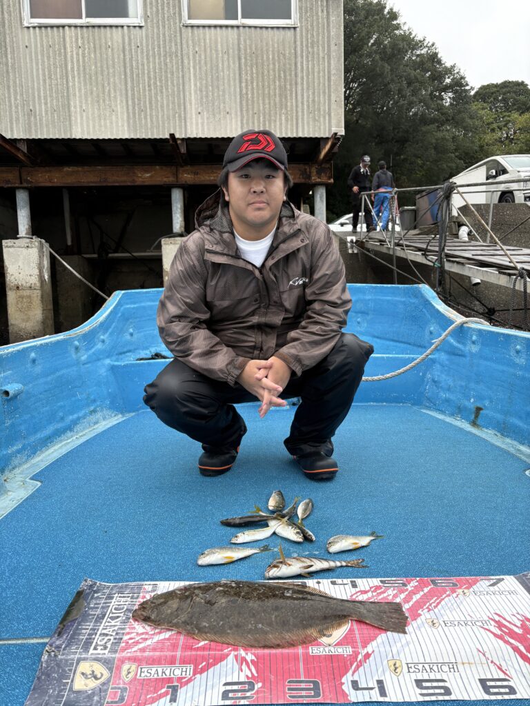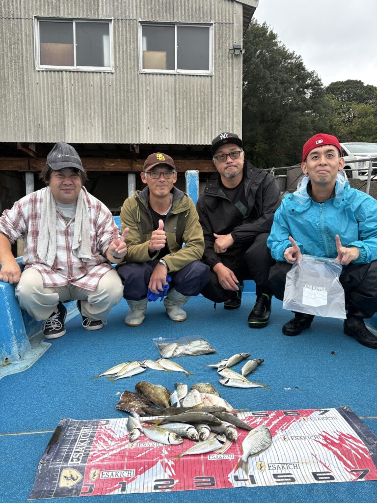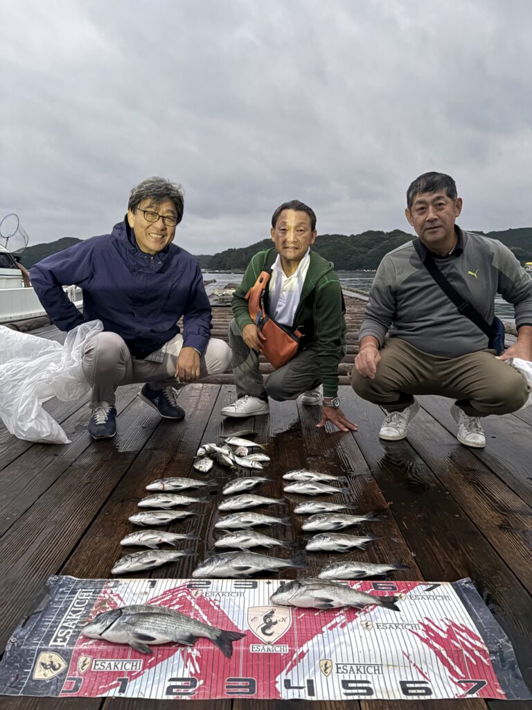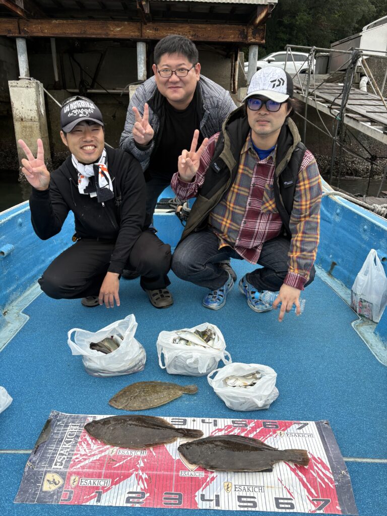 10月25日 本日は大雨予報でキャンセル多数でしたが、小雨が降ったり止んだりで風もなく釣りやすかったお話し!午後を中心に釣果も伸び、チヌは良型含めて2桁枚数複数組‼︎泳がせではヒラメが絶好調で、計4枚+ガンゾウヒラメ!アジも27cm頭に良型多数でした‼︎