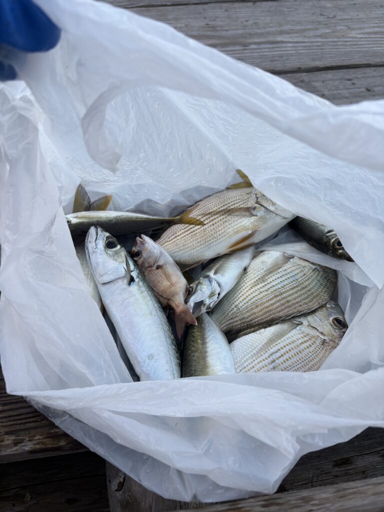 餌:アミエビ(サビキ)、シラサエビ、サナギ、カニ