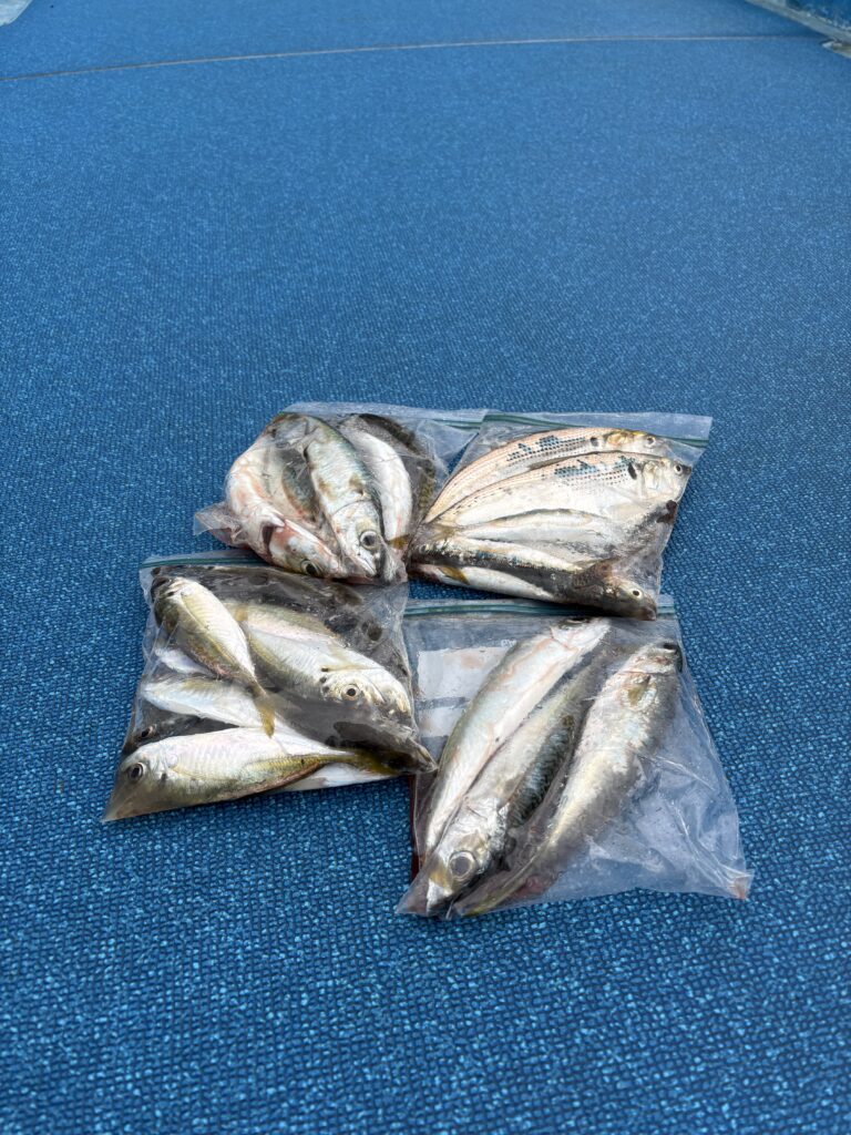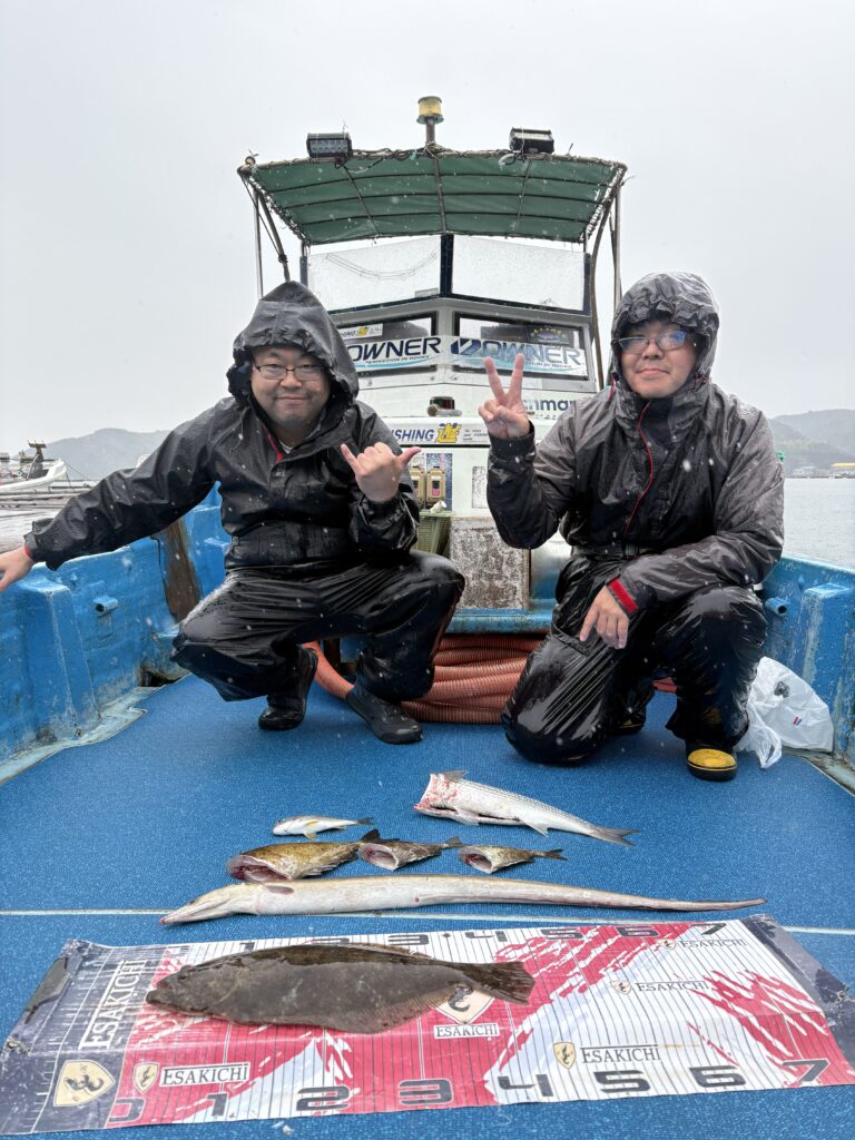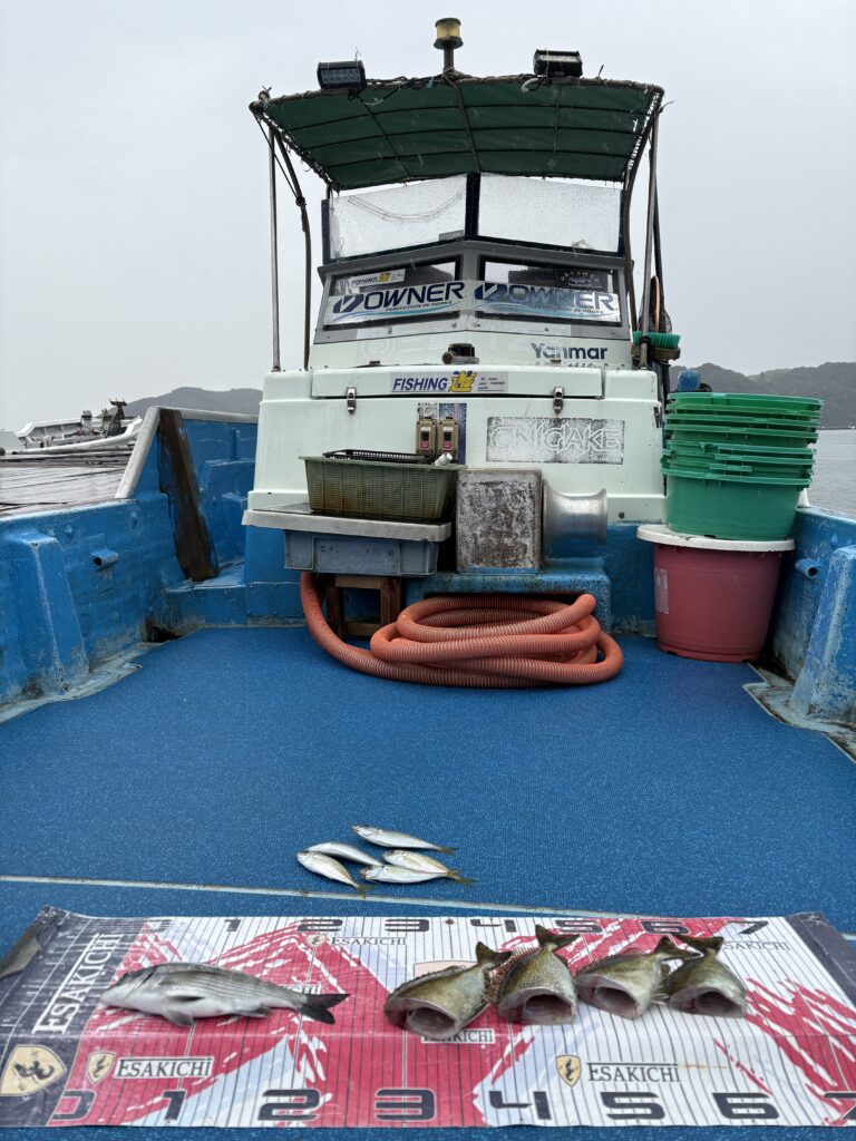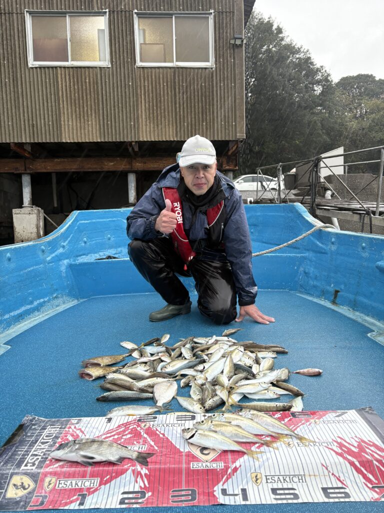 10月31日 10月最終日!昼前から大雨+強風+うねりと大荒れのお天気に。皆様早上がりとなってしまいましたが、お楽しみ頂けたようです‼︎泳がせではシオのバラしが複数回ありましたが、ヒラメ・ハモ!チヌも最多4枚(写真は明日)あがり、アジは午後から爆釣とのお話し‼︎