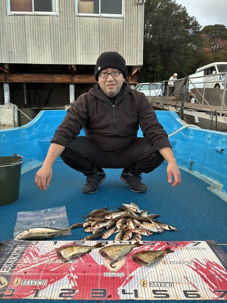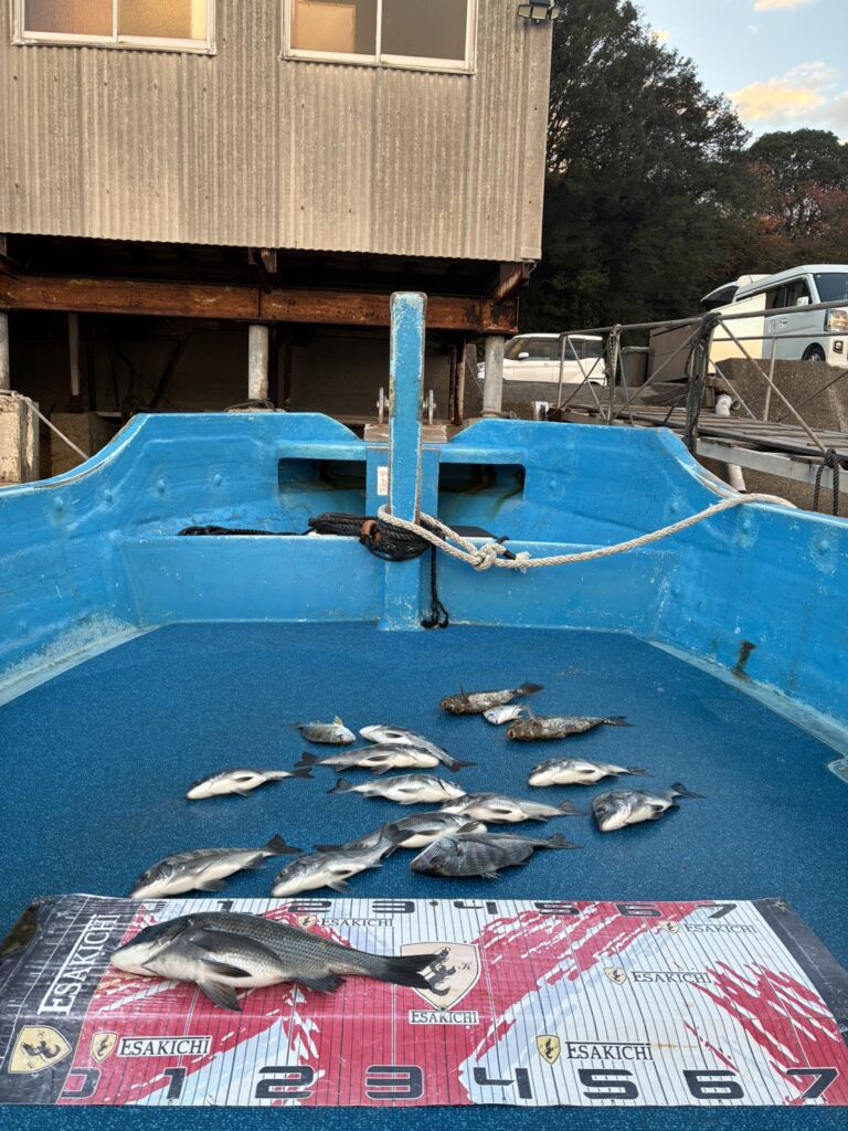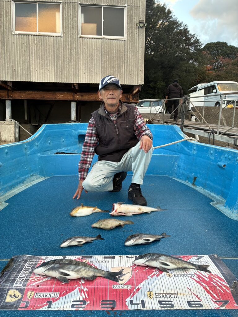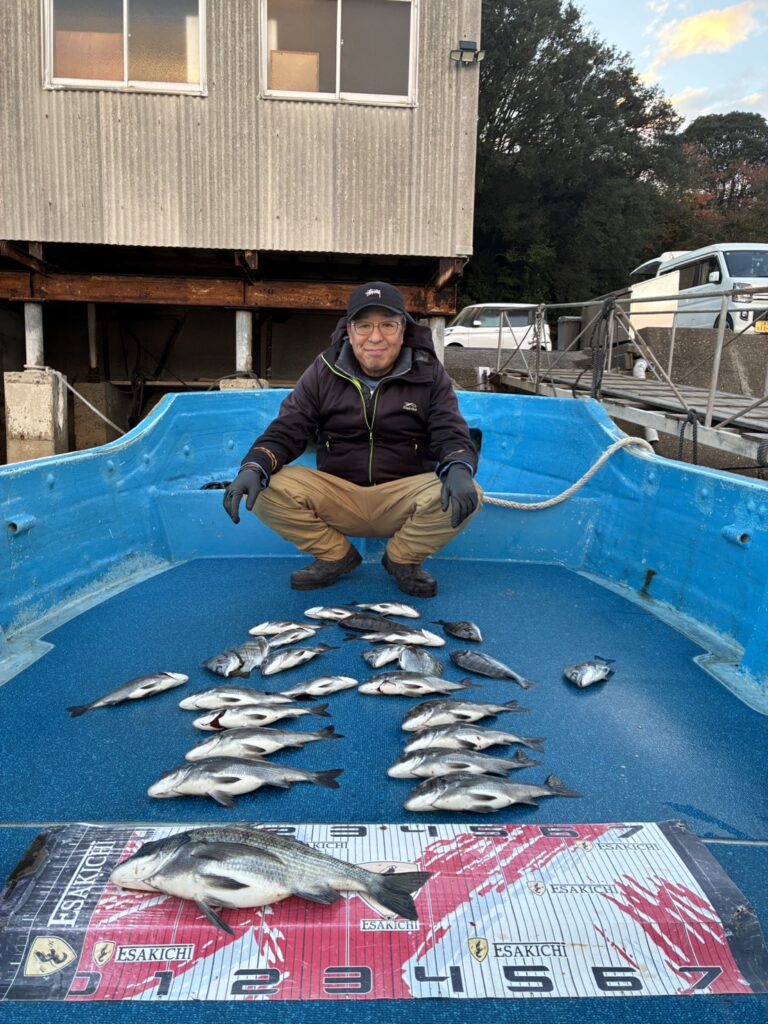 11月18日 本日は急激な冷え込み+強風となり、一気に冬を感じる気候になりました。お客様も少なかったですが、釣果は◎!チヌは狙われた方は皆様ゲットで、2桁枚数複数組+良型‼︎泳がせは当たりがあるもかからずでしたが、アジは午後から大漁ゲットされました! 2025年釣果 2025.11.18 栗原様筏釣り餌:オキアミ、サナギ、コーン、オキアミサナギ、オキアミコーン24-41cmチヌ26枚 西様筏釣り餌:オキアミ23-35cmチヌ12枚、へダイ、アイゴ 百南様カセ釣り餌:オキアミ25-36cmチヌ4枚、28cmカワハギ、ボラ、フグ 工藤様筏釣り餌:アミエビ(サビキ)アイゴ、サバ、アジ大漁