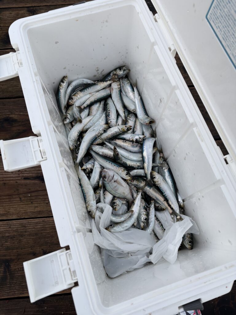 25-26cmチヌ2枚、57cmスズキ、マイワシ多数、アジ