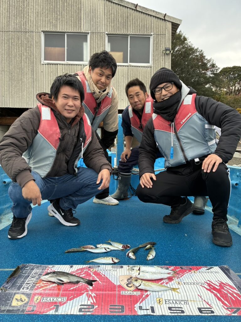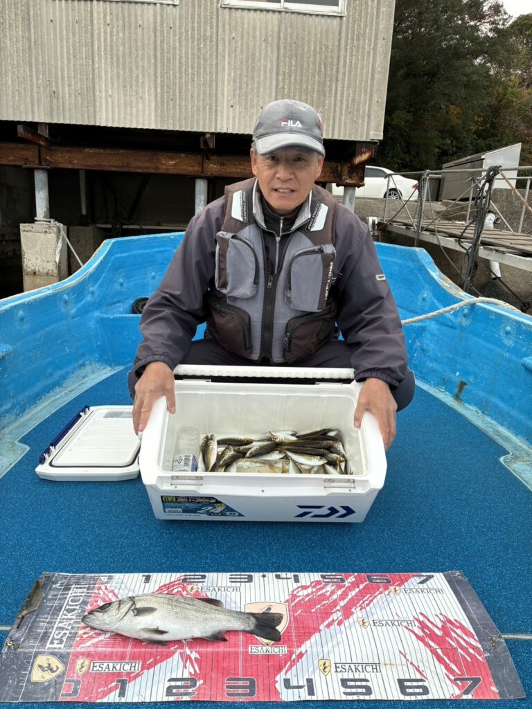 12月3日 本日は爆風予報もあり、お客様少なかったです。昼前から風が強まり白波も立ち、早上がりの方ばかりに。それでも釣果あがり、お写真撮らせて頂けました!午前中からアジが釣れていたようで、泳がせではヒラスズキ‼︎チヌも午後にあがっておりました! 2025年釣果 2025.12.03 上杉様筏釣り餌:アミエビ(サビキ)、泳がせ38cmヒラスズキ、アジ多数 宮﨑様筏釣り餌:アミエビ(サビキ)、オキアミ22.5cmチヌ、マイワシ、アジ