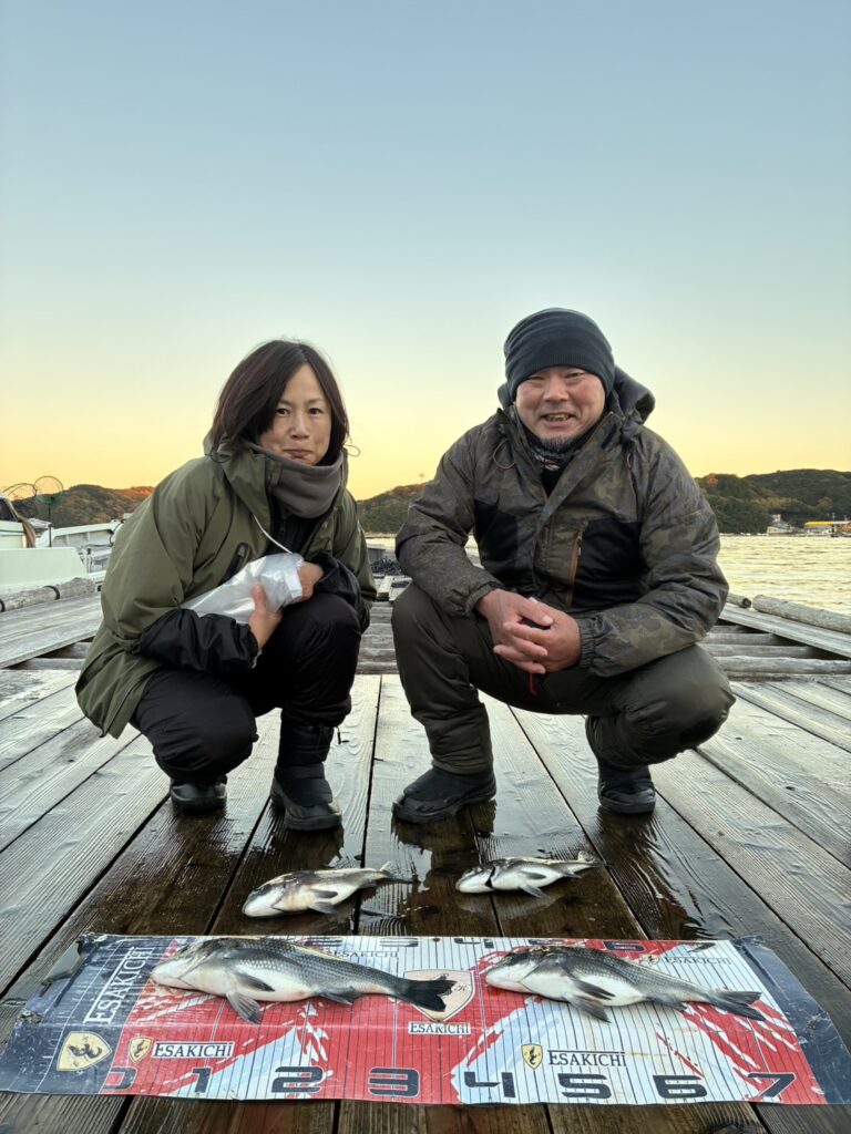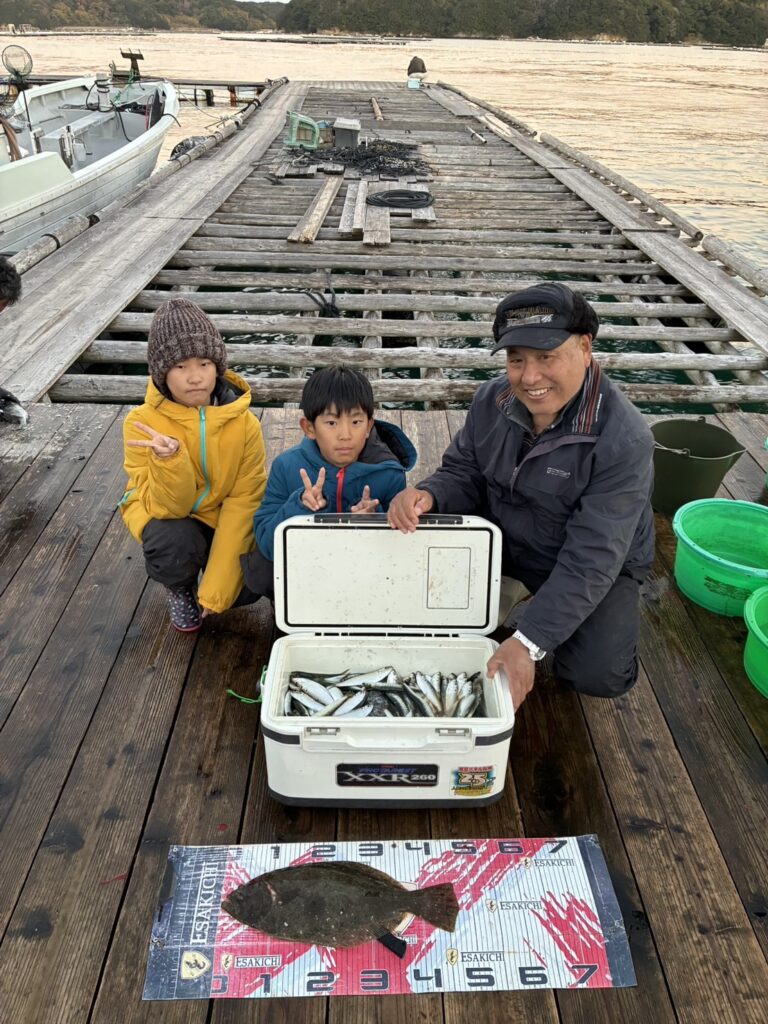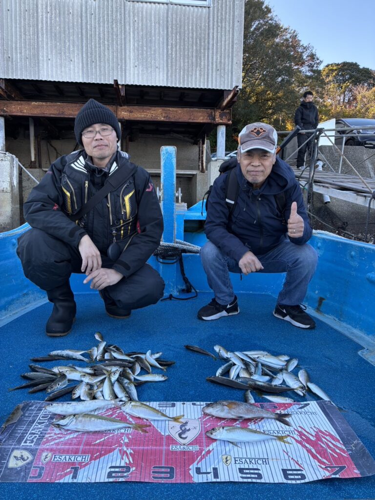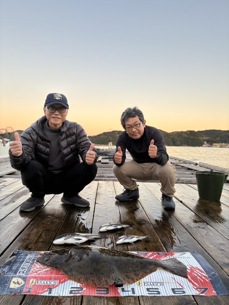 12月6日 本日は暖かさを感じる釣り日和で、お客様多数お越しくださいました!午前中は厳しかったですが、午後から釣果伸ばされた方多かったです‼︎チヌは2桁枚数複数組+良型複数枚!ヒラメも68cmのビッグサイズ頭に計2枚‼︎マイワシは大漁の組もあり、良型ホウボウもゲット!