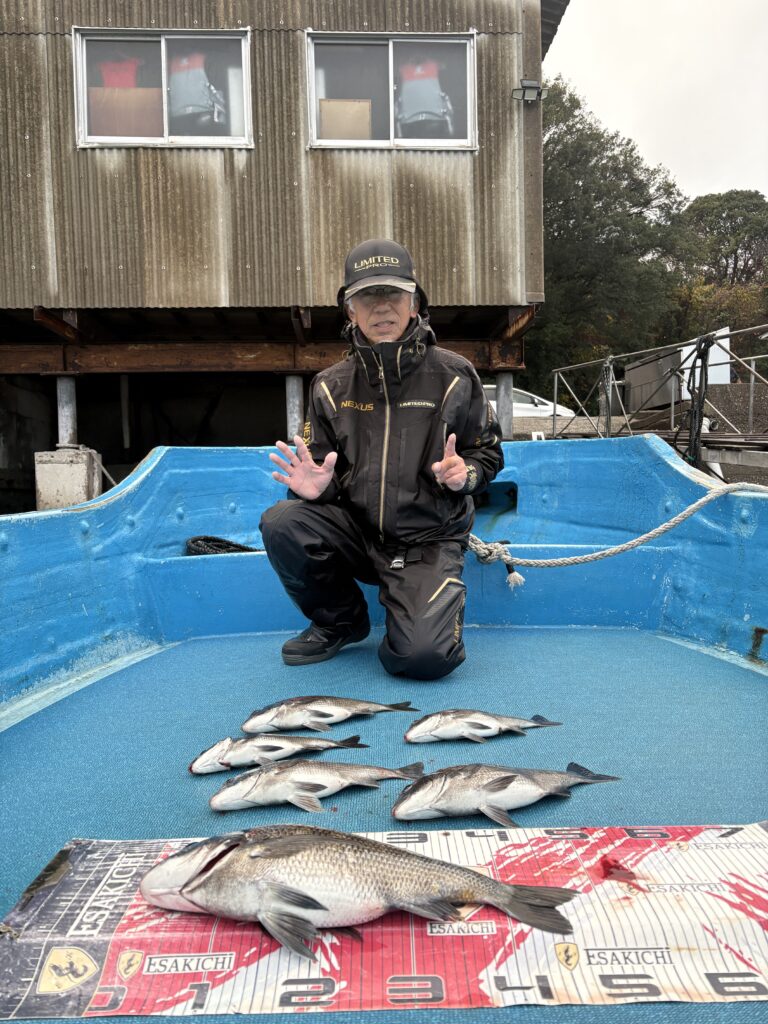 11月5日 本日は昼前から雨が降ったり止んだりの繰り返しで、寒かったです。活性高そうで、朝から当たり多数とのお話し!チヌは2桁枚数の方いらっしゃり、複数組で複数枚ゲット‼︎アジは午後に釣れたお客様いらっしゃり、ヒラメもあがったものの筏から滑り落ちてしまったようです。