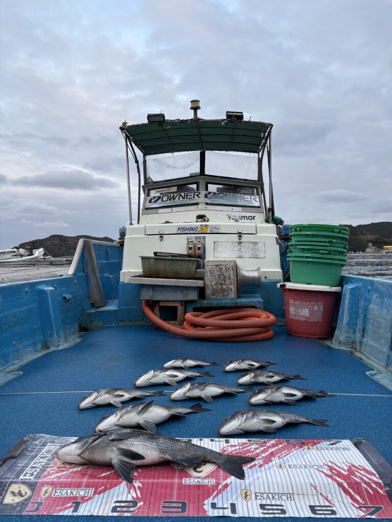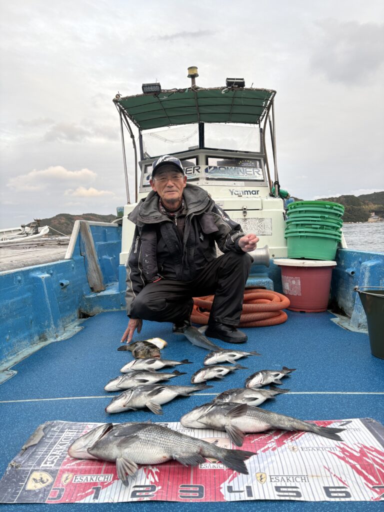 12月23日 本日は寒さもあまり厳しくなく、風もない1日で終日釣り日和になりました!お客様はお1人のみでしたが、頑張ってくださいました‼︎午後から状況良くなったお話しで、狙いのチヌをあげられました!サイズも良型多く、2桁枚数目前で好釣果でした‼︎ 2025年釣果 2025.12.23 百南様筏釣り餌:オキアミ32-45cmチヌ9枚、ボラ、フグ 若船頭筏釣り餌:オキアミ、ボケ28-48.5cmチヌ10枚