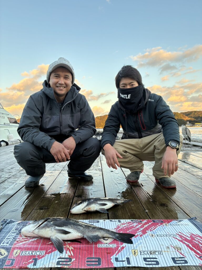 12月27日 本日は非常に冷え込む1日となりましたが、お天気は良く釣り日和に!寒さで早上がりの方も多かったですが、釣果伸ばされた方も‼︎チヌはビッグサイズばかりで、終盤に伸びたお話し!超ビッグヒラメはタモに入らない程のサイズで、惜しくもバラしてしまったようです。