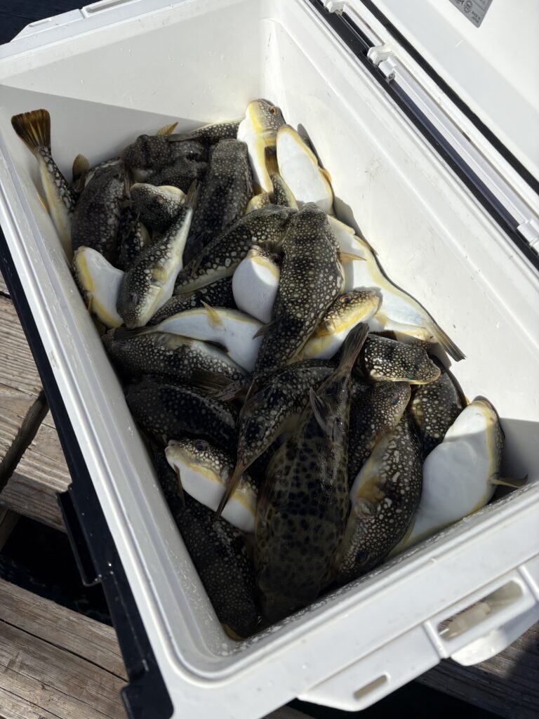 1月7日 本日はお天気も良く風もなくで、終日釣り日和となりました!海の中の活性も非常に高そうなお話しで、当たりは多い状況に‼︎チヌは複数組であがり(リリース済でお1人はお写真撮れず)、連日のビッグサイズ!フグは非常に元気な様子で、ボラもあがりました‼︎ 2026年釣果 2026.01.07 佐藤様筏釣り餌:カニ47cmチヌ 桜井様筏釣り餌:オキアミ他フグ大漁