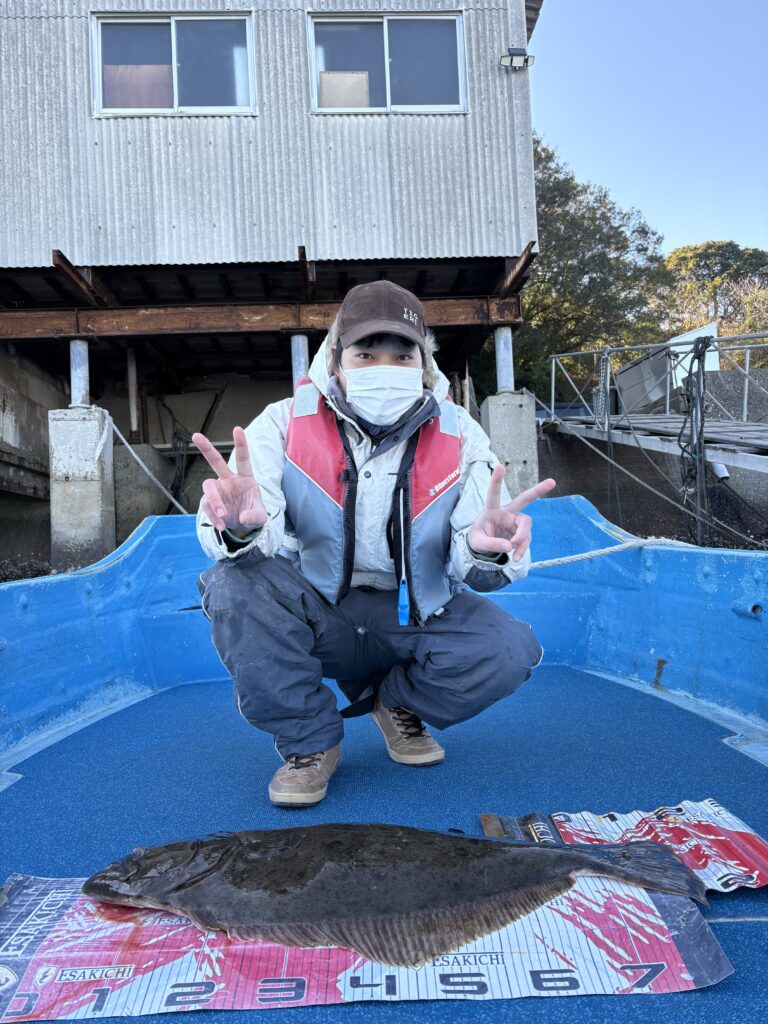1月9日 本日は予報よりも強風となってしまい、終盤まで白波が立つ状況に。お客様少なかったですが、厳しい環境の中頑張ってくださいました!泳がせ釣りでは久しぶりにヒラメがあがり、モンスターサイズをゲット‼︎チヌは厳しかったようですが、フグ・ボラは多数あがりました! 2026年釣果 2026.01.09 日下様筏釣り餌:泳がせ85cmヒラメ 粕谷様筏釣り餌:オキアミ、虫餌フグ大漁