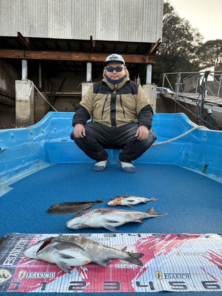 3月23日 本日は出船前に雨が止む予報でしたが、9時頃まで長引いてしまいました。少し待機してから筏へ行かれた方や、早上がりの方も。3連休と比較すると状況は好転しており、釣果も複数組にお写真撮らせて頂きました!チヌも複数組+複数枚、ビッグマダイ・コノシロなども‼︎