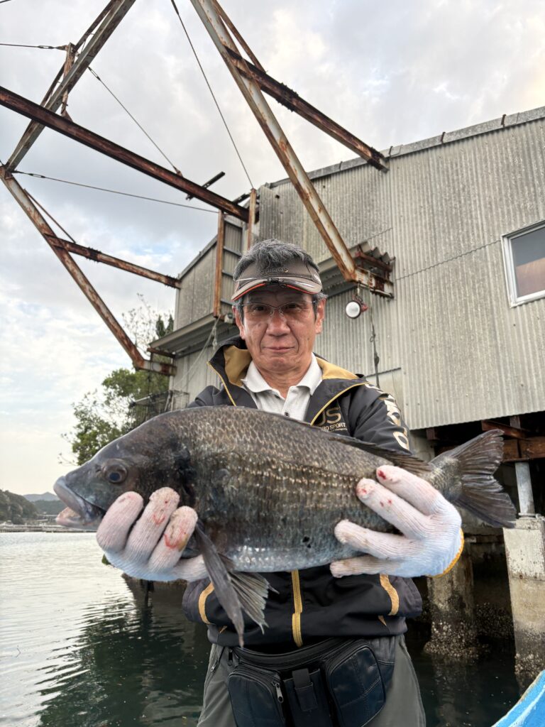 4月5日 本日朝一は風・うねりが残っておりましたが、すぐに収まり釣り日和に!お客様少なかったですが、釣果あげられた方多数‼︎サビキ釣りや五目釣りは厳しかったものの、チヌ狙いの方はほとんどがゲット!今年初の2桁枚数に加え、歳無しもあがりました‼︎ 2026年釣果 2026.04.05 下山様筏釣り餌:オキアミ、コーン38-50cmチヌ10枚 邑田様カセ釣り餌:牡蠣46.5-48cmチヌ3枚、40cmアイナメ 山田様筏釣り餌:オキアミ28-39cmチヌ3枚 斉藤様筏釣り餌:オキアミ、コーン35-37cmチヌ2枚 斉藤様カセ釣り餌:牡蠣43.5cmチヌ 和田様カセ釣り餌:オキアミ38cmチヌ 森本様カセ釣り餌:オキアミ35cmチヌ