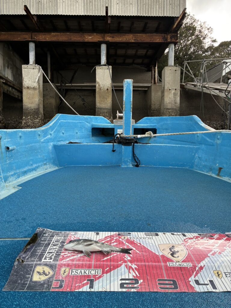 4月7日 本日は午前中雨が降っており、午後には止みましたが風速10mを超える爆風に。白波が立つ環境で、皆様早上がりとなってしまいました。釣果も伸びずでしたが、お帰り間際にチヌを釣られた方がいらっしゃいました!当たりは多く、コノシロ・ハゼ・フグなどあがりました‼︎ 2026年釣果 2026.04.07 久保寺様筏釣り餌:オキアミ22cmチヌ
